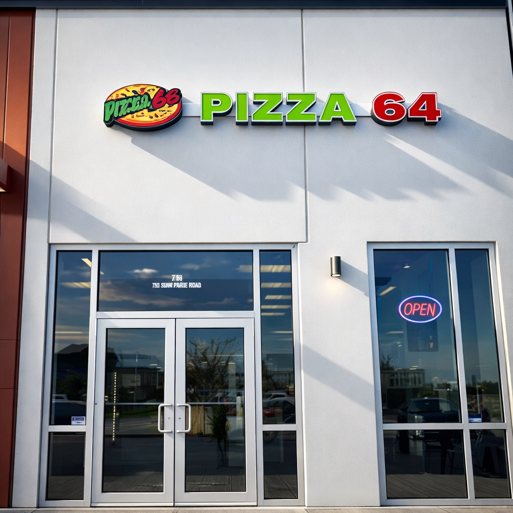 Pizza 64 was founded by Roop and Raj Dhillon, who brought their passion for great food and their heritage together to create something unique. Their vision was simple: combine the best of Canadian pizza with authentic Punjabi flavours to create pizzas that everyone would love. At our Saddlepeace location, we've become a neighbourhood favourite serving Saddleridge, Skyview Ranch, Redstone, and all of NE Calgary. Our commitment to generous toppings, bold flavours, and value-driven deals has made us the go-to choice for families, students, and workers throughout the community. Whether you're craving our signature Butter Chicken Pizza or a classic Meat Lovers, every bite reflects our dedication to quality and flavour.